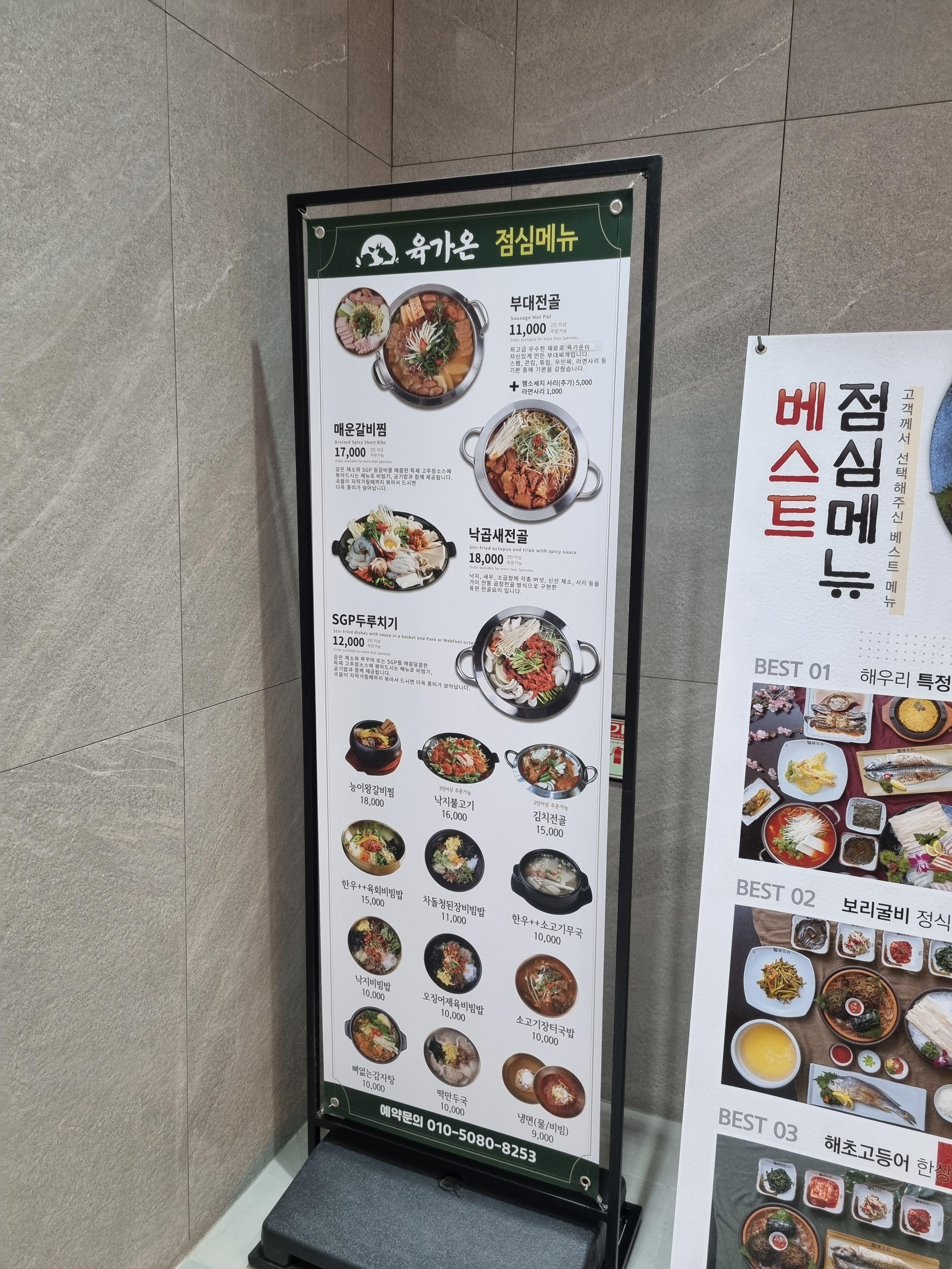 부대찌개, 낙지전골 은 만원이 넘는다.