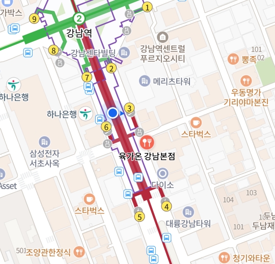 신분당선 3,4번출구 사이에 위치해있다.